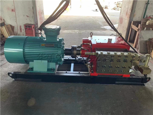 乳化液泵系列產品以四極防爆電機驅動,經一級齒輪減速,帶動五曲拐曲軸旋轉,再經連桿、滑塊帶動柱塞作往復運動,使工作液在泵頭中經吸排液閥吸入和排出,從而使電能轉換成液壓能,輸出高壓液體為中、厚煤層綜合機械化采煤液壓支架提供動力源,也可以用于地面工作液相同的其它液壓設備。