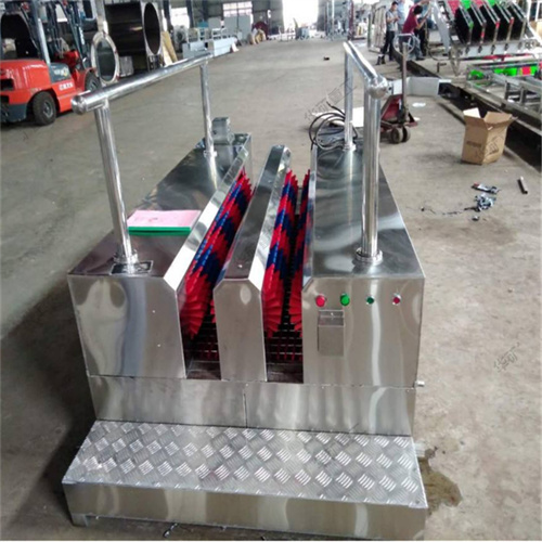 礦用洗靴機(jī)是井下人員升井后通過洗靴機(jī)時(shí),洗靴機(jī)全智能控水、電、動(dòng)力系統(tǒng)的運(yùn)行,可以一次性洗凈靴子底紋和靴面靴筒上的煤泥,保持靴子表面的清潔。礦用洗靴機(jī)是主要由洗靴系統(tǒng)、支撐部件、傳動(dòng)系統(tǒng)、電控系統(tǒng)、連接部件、人體行走扶手等構(gòu)成,安置在井口或副井井口洗靴池處。解決了員工升井后還要用手刷靴,費(fèi)時(shí)費(fèi)力還刷不干凈的問題,減輕了員工勞動(dòng)強(qiáng)度,保持了井口衛(wèi)生,減輕了粉塵污染,又能節(jié)約用水,是礦井標(biāo)準(zhǔn)化建設(shè)的可靠產(chǎn)品。