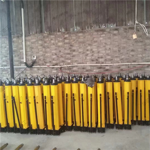 YT4-6A、YT4-8A型液壓推溜器,是為滿足煤礦炮采、普采工作面的需要而設(shè)計(jì)的手動(dòng)移溜器具。與其它移溜器械相比,具有適應(yīng)性強(qiáng)、機(jī)動(dòng)性好、操作省力、工效高、易維修、安全可靠,比集中供油的液壓千斤頂移溜可大量節(jié)省投資,經(jīng)濟(jì)上合算。 YT4-6A、YT4-8A液壓移溜器結(jié)構(gòu)為缸體外壁的前部和后部同向分別固定裝有前液壓閥和后液壓閥,在兩閥之間的缸體外壁相對(duì)的兩側(cè)固定裝有定位軸;缸體通過定位軸座落在固定座上的縱向長(zhǎng)孔內(nèi);固定座的底部固定裝有底板,底板靠近活塞桿一端向上翹起;固定座的頂部固定裝有嗆頂座,嗆頂座上部的槽形結(jié)構(gòu)向后傾斜,并與水平面成20°-24°夾角。本實(shí)用新型設(shè)計(jì)合理,液壓注液槍注液與缸體分離,推溜器移動(dòng)方便,缸體兩端可調(diào);活塞桿可與擋煤板連接時(shí)正常接觸,延長(zhǎng)設(shè)備使用壽命。