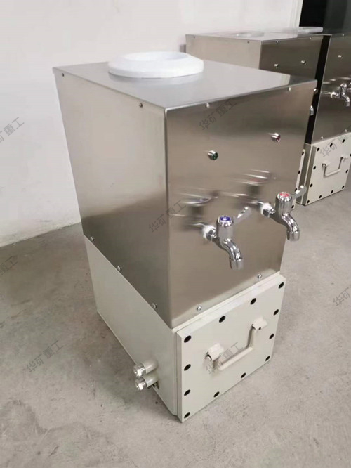 礦用防爆飲水機(jī)為礦用隔爆兼本安型,防爆標(biāo)志為Exd[ib]I。使用在有甲烷氣體混合物和煤塵爆炸危險(xiǎn)的煤礦井下。可同時(shí)提供85℃的熱水和常溫水,可供井下工作人員飲用熱水。本加熱器能自動(dòng)控溫,采用內(nèi)置不銹鋼電加熱管加熱,具有壽命長(zhǎng)熱效高,升溫快,噪聲低,具有安全隔爆,省電等特點(diǎn)。