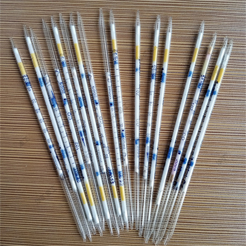 氣體檢測管外殼材質(zhì)玻璃管,內(nèi)裝一定載體和吸附劑,氣體通過時發(fā)生變色反應,由白色變成黃綠色,變色長度與二氧化氮氣體的濃度成正比,比長定量,而濃度標尺一般都直接印在檢測管上,因此可以直接從檢測管上的標尺讀取被測氣樣中氣體的濃度。檢測管以其快速、直觀、經(jīng)濟適用、安全可靠、操作簡單,隨時隨地都可檢測等優(yōu)點,廣泛用于環(huán)保、化工、煤炭、石油等多領域。