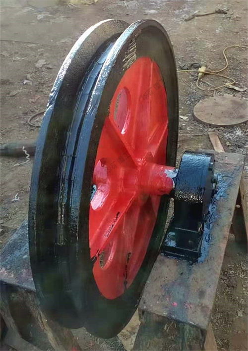 天輪安裝在井架上,作支撐,供礦井提升時支拖提升機卷筒到提升容器之間,引導(dǎo)鋼絲繩轉(zhuǎn)向之用。繩槽帶塑襯或膠塊,增加鋼絲繩的使用壽命。礦用天輪對固定軸、游動軸及鋼繩完全無磨損、耐高壓、自潤滑、特別耐磨,使用壽命2年以上,其固定或游動軸基本可使用不換。