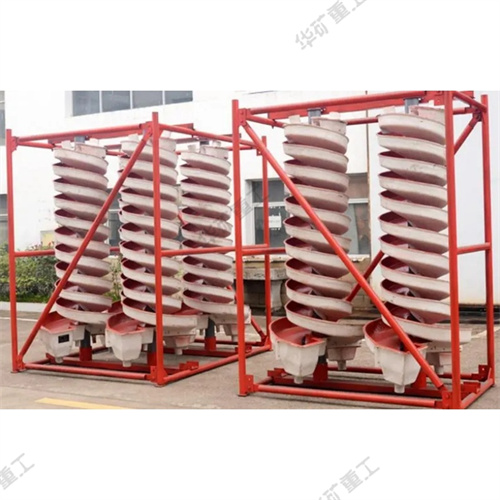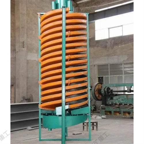 螺旋溜槽基本結(jié)構(gòu):螺旋溜槽設備的主體部件,由玻璃鋼制成的螺旋片用螺栓連接而成。在螺旋槽的內(nèi)表面上涂以耐磨襯里,通常是聚氨脂耐磨膠或摻以人造金鋼砂的環(huán)氧樹脂。在螺旋溜槽的上部有分礦器和給礦槽,下部有產(chǎn)物
